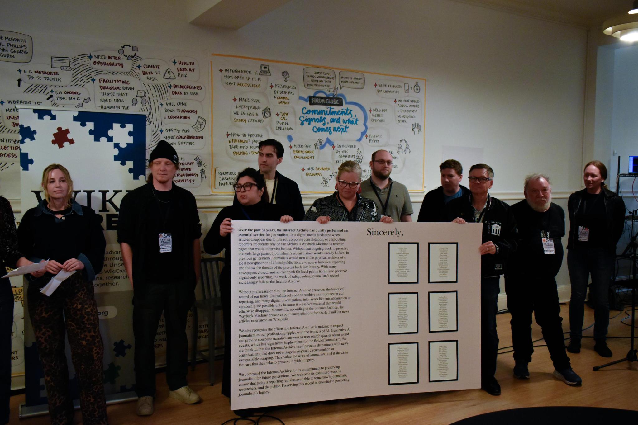 The letter comes as major media outlets like the New York Times are asking the Internet Archive to cease its preservation of the news. It was delivered to Internet Archive staff on stage at WikiCredCon, an annual Wikipedia event, by journalist-signatories Laura Flynn and Zara Stone alongside members of tech justice organizations Fight for the Future and Electronic Frontier Foundation. WikiCredCon’s 2026 theme was “Addressing Reliability in an Era of Information Erosion.” According to Archive staff, the Wayback Machine preserves permanent citations for nearly 5 million news article references on Wikipedia.