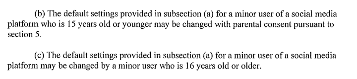 There is no safe or practical way for social media companies to determine who is a parent that can give consent to change default settings. This would involve uploading a birth certificate, or other extremely sensitive document, to untrustworthy companies. And it creates an easy path for abuse. If your creepy ex boyfriend wants to change your settings so they can track your location, all they’d have to do is photoshop a fake birth certificate and pretend to be your dad.