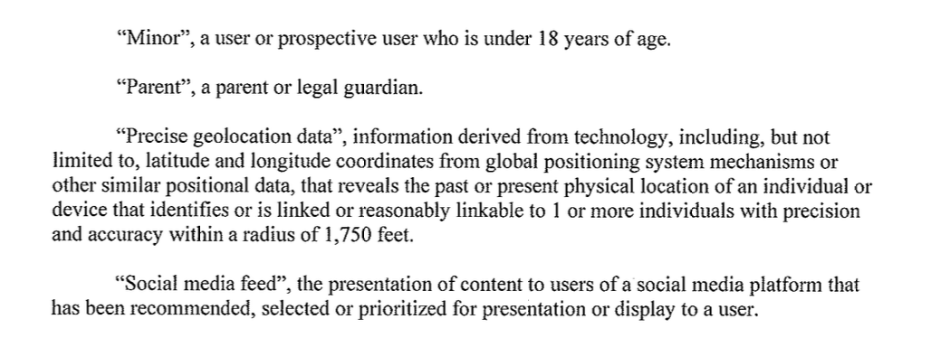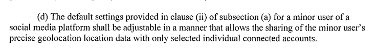 Nice carve-out for anxious parents who want to track their teens’ real-time location all the time with Life 360 or similar. And/or creepy stalkers who claim to be parents who want to do the same thing. It will be very difficult, or impossible, for social media companies to tell the difference between the two.