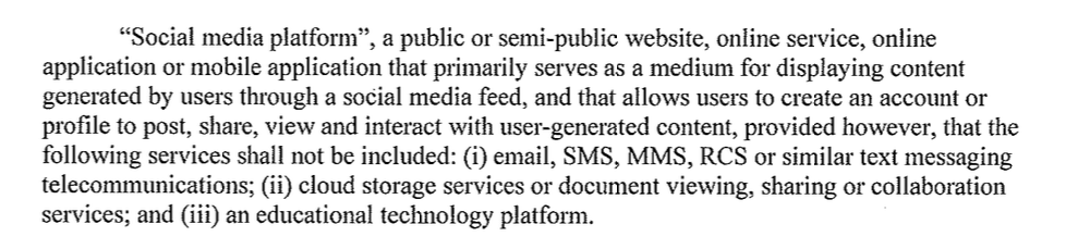 - Defines social media so broadly it would include Wikipedia, the Trevor Project, etc.